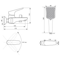 Комплектуется душевым шлангом в металлической оплетке с однорежимной лейкой, паспортом изделия с гарантийным талоном, универсальным гаечным ключом.