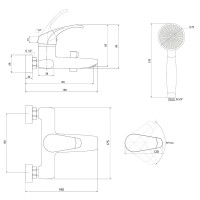 Комплектуется душевым шлангом в металлической оплетке с однорежимной лейкой, паспортом изделия с гарантийным талоном, универсальным гаечным ключом.
