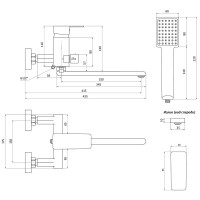 Комплектация: Смеситель, шланг, душевая лейка, держатель душевой лейки, эксцентрики, декоративные отражатели;