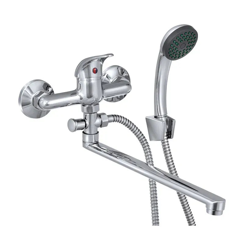 Современный однорычажный смеситель для ванны с длинным поворотным изливом от компании «СЛАВЕН» c собственной сборочной линией полного цикла в Подмосковье.