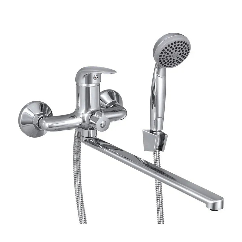 Современный однорычажный смеситель для ванны с длинным поворотным изливом от компании «СЛАВЕН» c собственной сборочной линией полного цикла в Подмосковье.