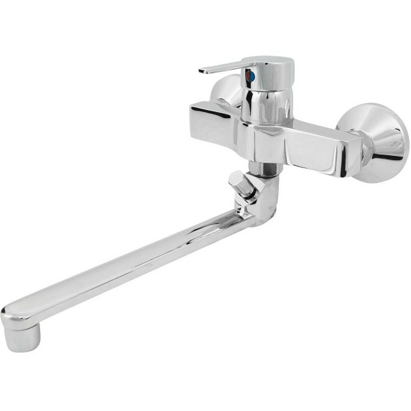 VIDIMA TECHNIK Настенный смеситель для ванны/душа, монтаж на стандартных эксцентриках (в комплекте: эксцентрики, металлические отражатели, уплотнительные прокладки), трубчатый поворотный излив 250 мм, угол поворота 360˚, аэратор Perlator, керамический картридж 35 мм, металлическая рукоятка с индикаторами горячей / холодной воды, ручное переключение ванна/душ