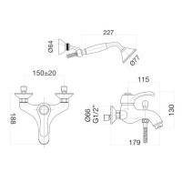 Смеситель для ванны Webert Aurora. Смеситель изготовлен из латуни.