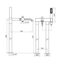 Смеситель для ванны напольный Webert Azeta. Смеситель изготовлен из латуни.