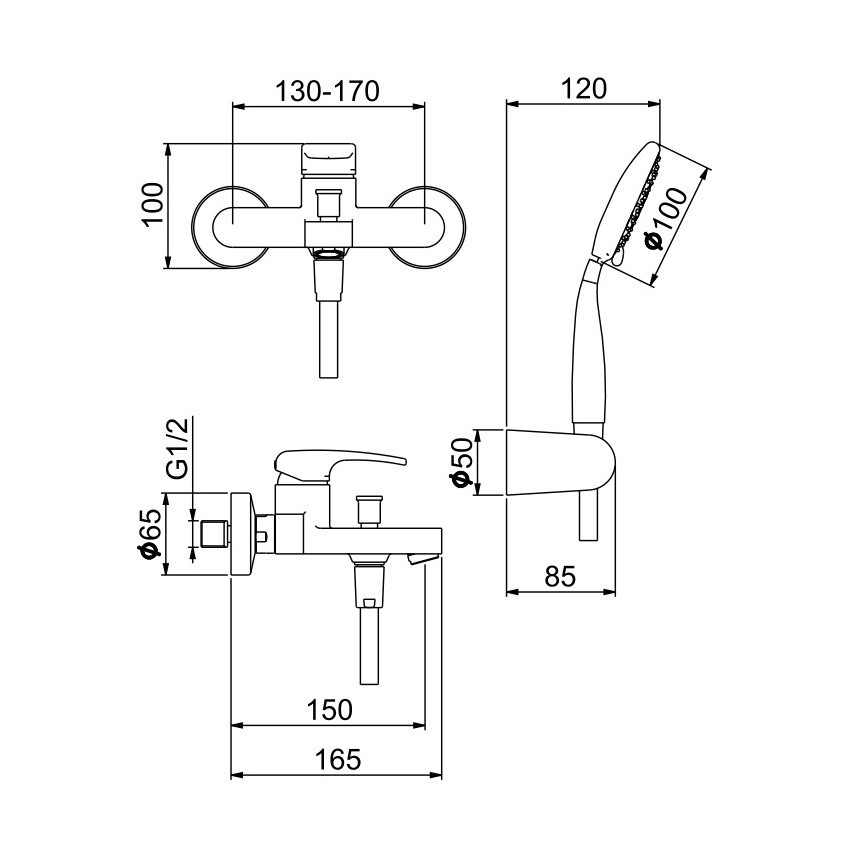 Комплектация: смеситель, лейка, держатель лейки, шланг;