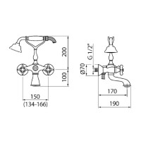 Смеситель для ванны Webert Ottocento. Смеситель изготовлен из латуни.