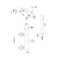 Смеситель для ванны Webert Rimini. Смеситель изготовлен из латуни.