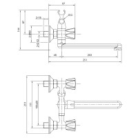 Материал: латунь. Покрытие: Mirror Shine. Цвет: хром. Керамические кран-буксы 180°. с термозащитными вставками. Керамический дивертор 90°. Излив 20 см. Держатель для душа на корпусе. Душевые аксессуары в комплекте: (шланг в оплетке из нержавеющей стали Double Lock, 1,5 м; душевая лейка 1 режим, держатель для душа). Эксцентрики, отражатели в комплекте