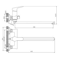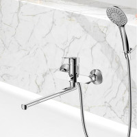 Смеситель для ванны WesnaArt TIS TIS21-320, хром. Материал: латунь. Покрытие: Mirror Shine. Цвет: хром. Керамический картридж Wesnaart 35 мм c противошумной вставкой. Керамический дивертор 90°. Излив 35 см.. Душевые аксессуары в комплекте: (шланг в оплетке из нержавеющей стали Double Lock, 1,5 м; душевая лейка 3 режима, держатель для душа). Эксцентрики, отражатели в комплекте.