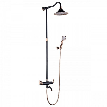 Смеситель Lemark Prime LM6162BRG для ванны и душа с верх. душем "Тропический дождь", черн/роз.золото