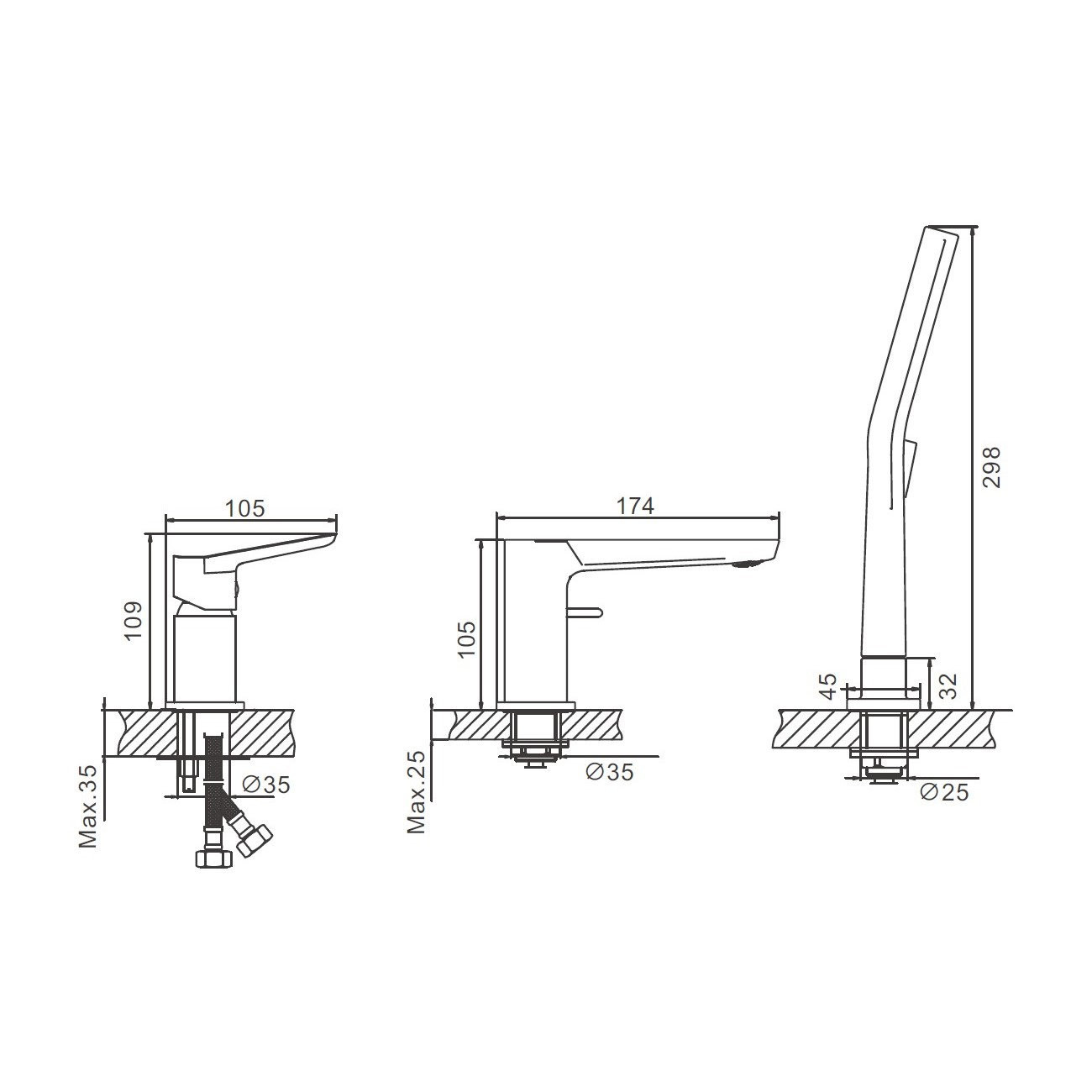 Отверстия для монтажа: 3;