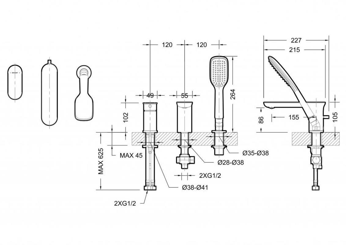 Смеситель на борт ванны Bravat Gina F565104C-2-ENG, хром. Душевой гарнитур в комплекте: да. Управление: рычажное. Монтаж: на борт ванны.