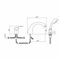 Смеситель на борт ванны FASHUN A1121, хром. Материал: латунь. Вращение излива: фиксированный. Управление: рычажное. Душевой гарнитур в комплекте: да.