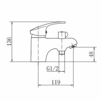 Смеситель на борт ванны FASHUN A1221, хром. Материал: латунь. Вращение излива: фиксированный. Управление: рычажное. Душевой гарнитур в комплекте: да.