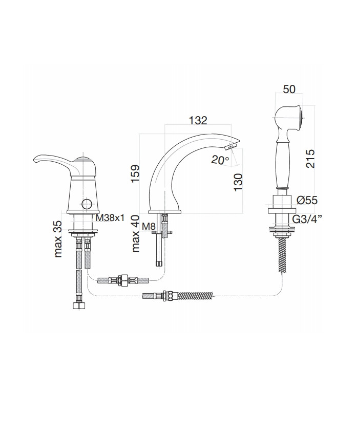 Смеситель на борт ванны Fiore Jafar 47CO5105, хром-золото