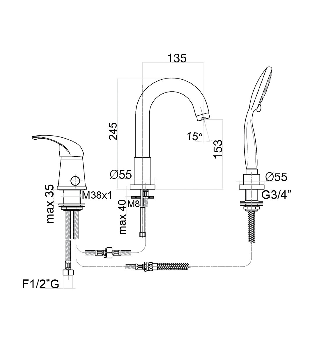 Длина шланга, см: 150;