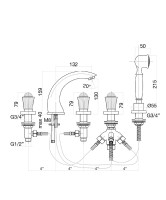 Смеситель на борт ванны Fiore VENERE SKY (SWAROVSKI®) 13OO0608, золото