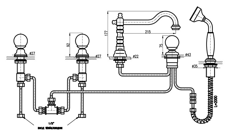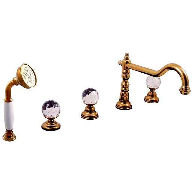 Смеситель на борт ванны Rav Slezak Brilliance164.5P монолитный, с душевым гарнитуром, изготовлен из высококачественной латуни, которая исключает какую-либо коррозию. Латунные рукоятки c граненым хрусталем от чешского производителя Preciosa Bohemie Glass. Качественные керамические кран буксы, гарантируют долговечность и мягкий поток воды, производство Германия. Керамический переключатель душ/излив. Шланг с пружиной, которая обеспечивает его лёгкое возвращение в держатель. Длина шланга 2000 мм. Латунная душевая лейка с керамической ручкой. В комплекте смеситель, шланг, душевая лейка и комплект крепления.