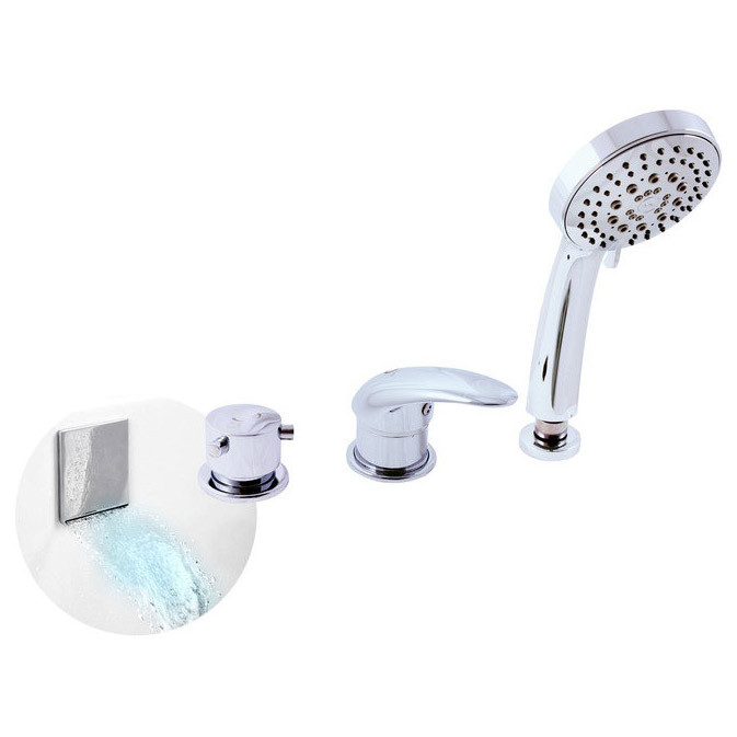 Смеситель на борт ванны Rav Slezak Dunaj D463.5P с душевым гарнитуром, изготовлен из высококачественной латуни, которая исключает какую-либо коррозию. Излив монтируется в ванну. Латунные рукоятки. Качественный керамический картридж 40 мм Kerox, производство Венгрия, гарантирует долговечность и мягкий поток воды. Керамический переключатель душ/излив. Пластиковый шланг с пружиной, которая обеспечивает лёгкое возвращение шланга в держатель. Длина шланга 2000 мм. Пластиковая душевая лейка с пятью режимами, с антикальк резиновыми насадками. В комплекте смеситель, шланг, душевая лейка и комплект крепления.