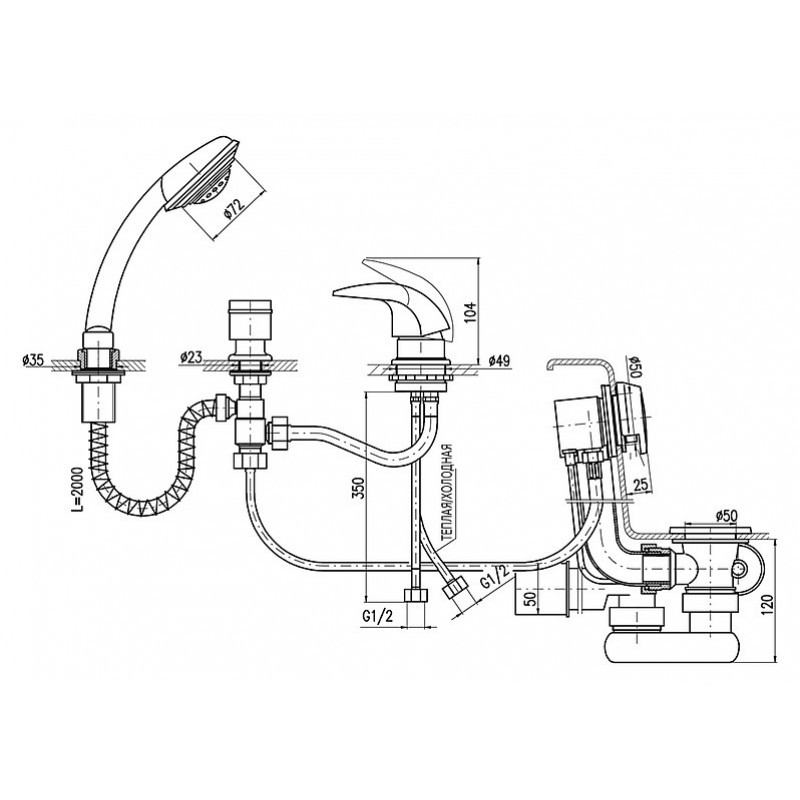 Комплектация: смеситель, слив-перелив, сифон с маленькой пробкой, шланг, душевая лейка, комплект крепления, инструкция;