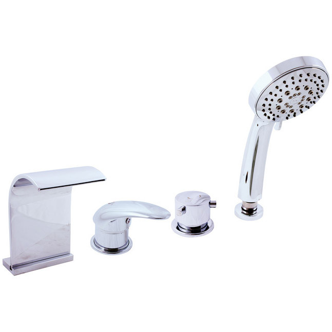 Rav Slezak Dunaj D467.5P каскадный смеситель для ванны. Врезной на 4 отверстия. В состав комплекта входит: керамический переключатель, керамический картридж 40 мм, душевой шланг с пружиной, душевая лейка, гибкая подводка 1/2.