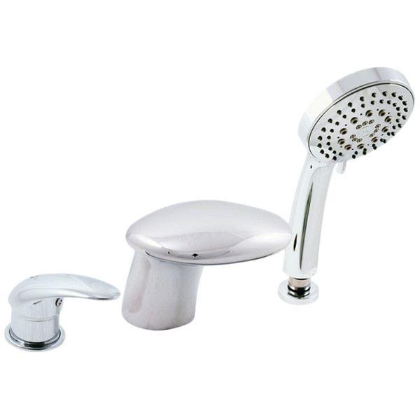 Rav Slezak Dunaj D471.5Y каскадный смеситель для ванны. Врезной на 3 отверстия. В состав комплекта входит: керамический переключатель в миксе ручки, картридж 40 мм, душевой шланг с пружиной, душевая лейка, гибкая подводка 1/2.