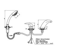 Rav Slezak Dunaj D471.5Y каскадный смеситель для ванны. Врезной на 3 отверстия. В состав комплекта входит: керамический переключатель в миксе ручки, картридж 40 мм, душевой шланг с пружиной, душевая лейка, гибкая подводка 1/2.