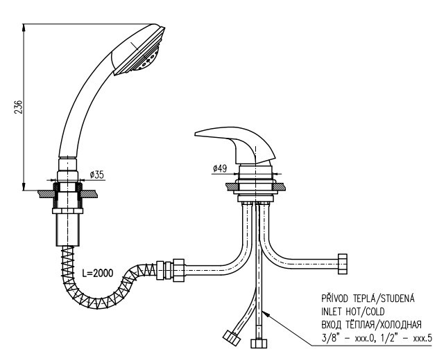 Смеситель на борт ванны Rav Slezak Dunaj D475.5Y. Монтаж на 2 отверстия. Латунные рукоятки. Керамический переключатель в миксе ручки, картридж KEROX КА4012 40 мм, производство Венгрия. При открытие ручки и поворота влево - вода подается из излива. При открытие ручки и повороте вправо - вода подается из душевой лейки. Шланг MH0005SM 2 м с пружиной. Пружина обеспечивает лёгкий ход шланга при возвращении в держатель. Гибкая подводка - шланги 1/2.