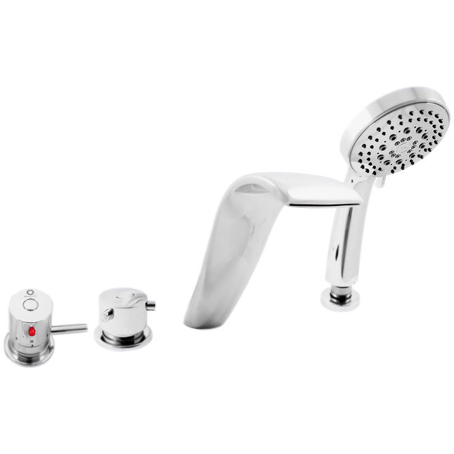 Термостат на борт ванны Rav Slezak Dunaj Termostat DT261.5P монолитный, с душевым гарнитуром, изготовлен из высококачественной латуни, которая исключает какую-либо коррозию. Латунные рукоятки. Качественный керамический термостатический картридж 40 мм Kerox, производство Венгрия, гарантирует долговечность и мягкий поток воды. Керамический переключатель душ/излив. Пластиковый шланг с пружиной, которая обеспечивает лёгкое возвращение шланга в держатель. Длина шланга 2000 мм. Пластиковая душевая лейка с четырьмя режимами, с антикальк резиновыми насадками. В комплекте смеситель, шланг, душевая лейка и комплект крепления.