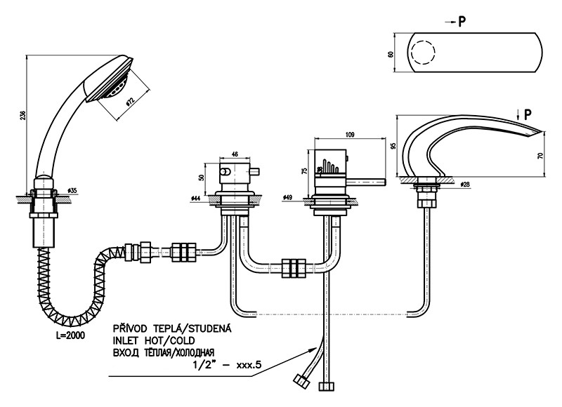 Смеситель на борт ванны Rav Slezak Dunaj Termostat DT272.5P монолитный, с душевым гарнитуром, изготовлен из высококачественной латуни, которая исключает какую-либо коррозию. Латунные рукоятки. Качественный термостатический керамический картридж 40 мм Kerox, производство Венгрия, гарантирует долговечность и мягкий поток воды. Керамический переключатель душ/излив. Пластиковый шланг с пружиной, которая обеспечивает лёгкое возвращение шланга в держатель. Длина шланга 2000 мм. Пластиковая душевая лейка с пятью режимами, с антикальк резиновыми насадками. В комплекте смеситель, шланг, душевая лейка и комплект крепления.