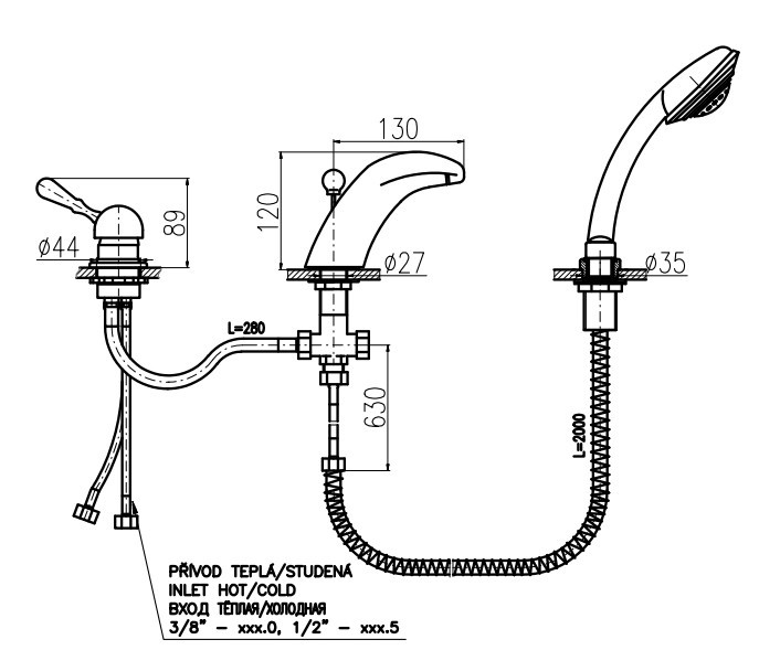Rav Slezak Labe Mosaz L071.5SSM каскадный смеситель для ванны. Врезной на 3 отверстия. В состав комплекта входит: переключатель в изливе, керамический картридж 35 мм, душевой шланг с пружиной, душевая лейка, гибкая подводка 1/2.