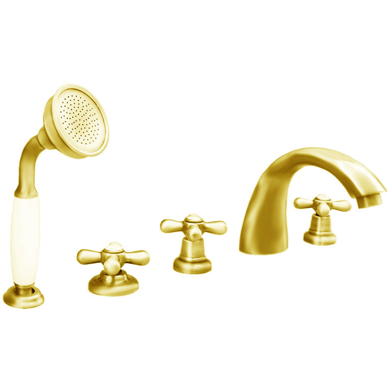 Смеситель на борт ванны Rav Slezak Morava retro MK169.5P монолитный, с душевым гарнитуром, изготовлен из высококачественной латуни, которая исключает какую-либо коррозию. Латунные рукоятки. Керамическиe кран буксы, производство Германия. Керамический переключатель переключатель душ/излив. Металлический шланг с двойной оплеткой, с пружиной, которая обеспечивает лёгкое возвращение шланга в держатель. Длина шланга 2000 мм. Латунная душевая лейка. В комплекте смеситель, шланг, душевая лейка, гибкая подводка и комплект крепления.