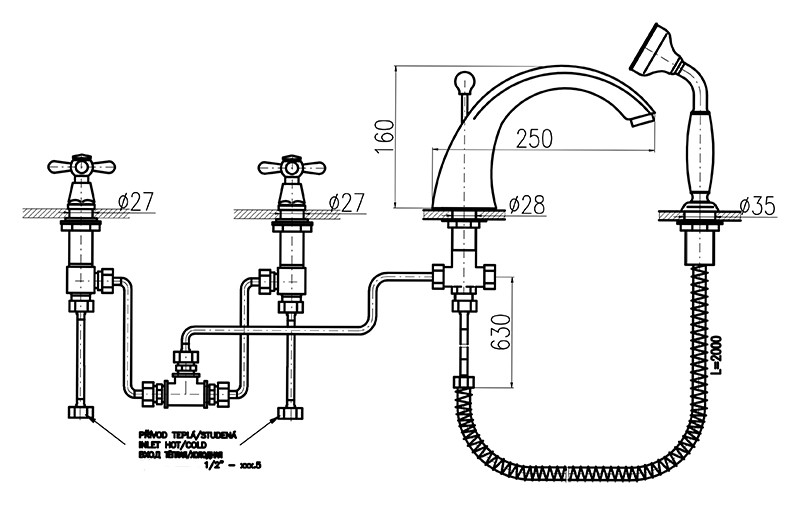 Смеситель на борт ванны Rav Slezak Morava retro MK169.5S монолитный, с душевым гарнитуром, изготовлен из высококачественной латуни, которая исключает какую-либо коррозию. Латунные рукоятки. Качественные керамическиe кран буксы, производство Германия. Переключатель душ/излив в изливе. Металлический шланг, с двойной оплеткой, с пружиной, которая обеспечивает лёгкое возвращение шланга в держатель. Длина шланга 2000 мм. Металлическая душевая лейка. В комплекте смеситель, шланг, душевая лейка и комплект крепления.