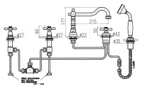 Смеситель на борт ванны Rav Slezak Morava retro MK464.5P монолитный, с душевым гарнитуром, изготовлен из высококачественной латуни, которая исключает какую-либо коррозию. Латунные рукоятки. Качественные керамическиe кран буксы, производство Германия. Керамический переключатель душ/излив. Металлический шланг с пружиной, которая обеспечивает лёгкое возвращение шланга в держатель. Длина шланга 2000 мм. Металлическая душевая лейка. В комплекте смеситель, шланг, душевая лейка и комплект крепления.