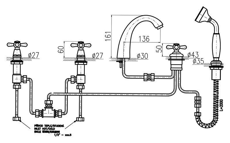 Смеситель на борт ванны Rav Slezak Morava MK476.5 монолитный, с душевым гарнитуром, изготовлен из высококачественной латуни, которая исключает какую-либо коррозию. Латунные рукоятки. Керамическиe кран буксы, производство Германия. Керамический переключатель душ/излив. Металлический шланг с двойной оплеткой, с пружиной, которая обеспечивает лёгкое возвращение шланга в держатель. Длина шланга 2000 мм. Латунная душевая лейка. В комплекте смеситель, шланг, душевая лейка, гибкая подводка и комплект крепления.