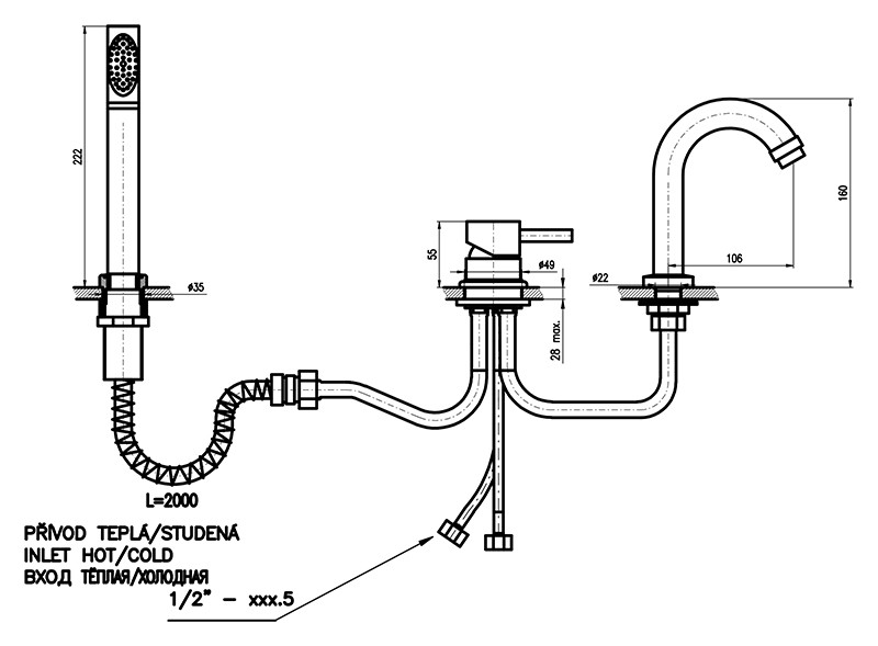 Смеситель на борт ванны Rav Slezak Seina SE962.5PZ