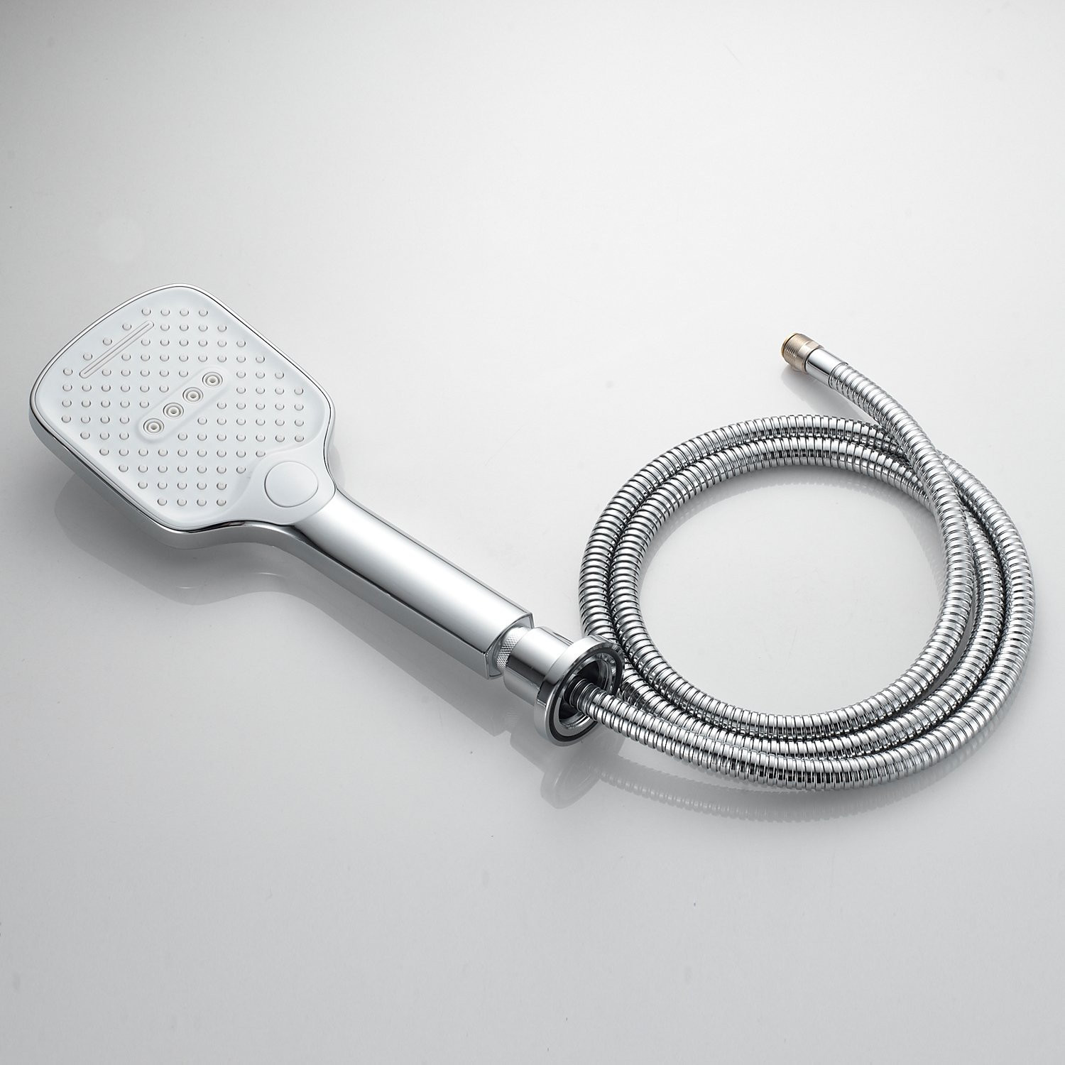 Смеситель имеет 3 монтажных отверстия, что позволяет установить его максимально удобно. Душевой шланг длиной 150 см обеспечивает комфортное использование, а ручной душ из ABS-пластика с тремя режимами работы позволит выбрать оптимальный вариант для каждого члена семьи.