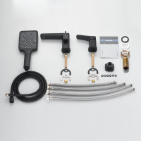 Комплектация: смеситель,излив с переключателем потоков, лейка, шланг, держатель лейки, гибкая подводка, комплект креплений;