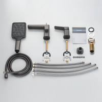 Комплектация: смеситель,излив с переключателем потоков, лейка, шланг, держатель лейки, гибкая подводка, комплект креплений;