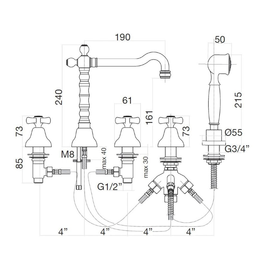 Комплектация: смеситель, внутренняя часть, лейка, подводка;