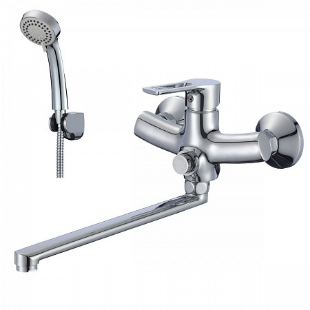 Смеситель Rossinka RS43-32 одноручный универсальный с поворотным изливом 350мм, кнопочный дивертор