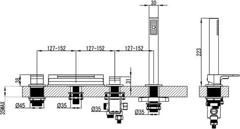 Смеситель врезной каскадный для ванн CR 025.00