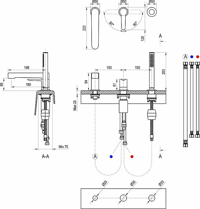 Смеситель врезной каскадный для ванн PU 026.00