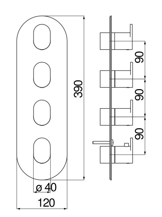 UP94104CR UP термостатический смеситель для ванны 4 выхода (внешняя часть)