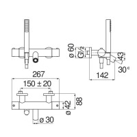 VE125010/2FLP VELIS термостатический смеситель для ванны, с ручным душем и шлангом 150 см, глянцевый черный