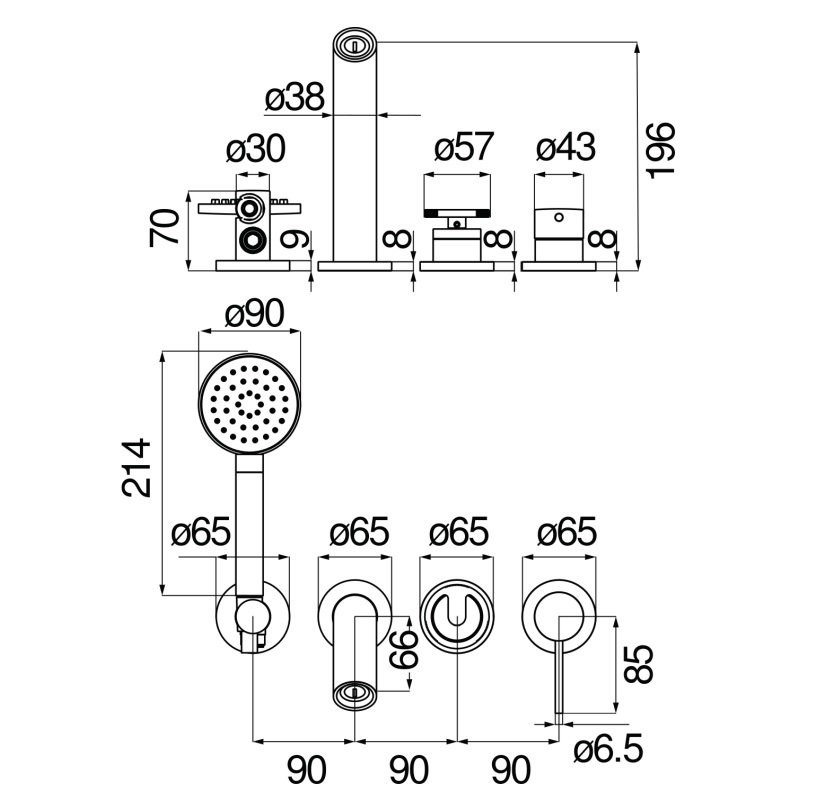 WEBK110/91SOIX SOLE смеситель для ванны, с душевой лейкой (внешняя часть), шлиф. хром