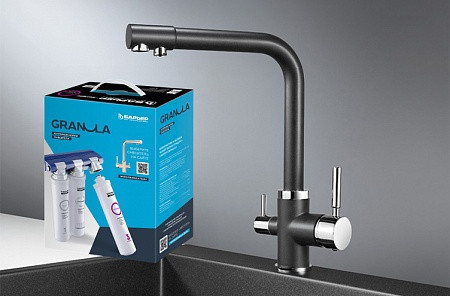 Комплект: Смеситель Granula GR-2015 черный для кухни + Фильтр Granula ("Барьер ЭКСПЕРТ")