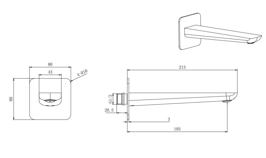 AQ1041CR ВЕГА излив для ванны 190 мм
