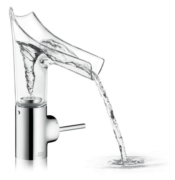 AX 12 112 000 Starck V Смеситель для раковины 141 мм, стеклянный излив-каскад, незапир. слив. га