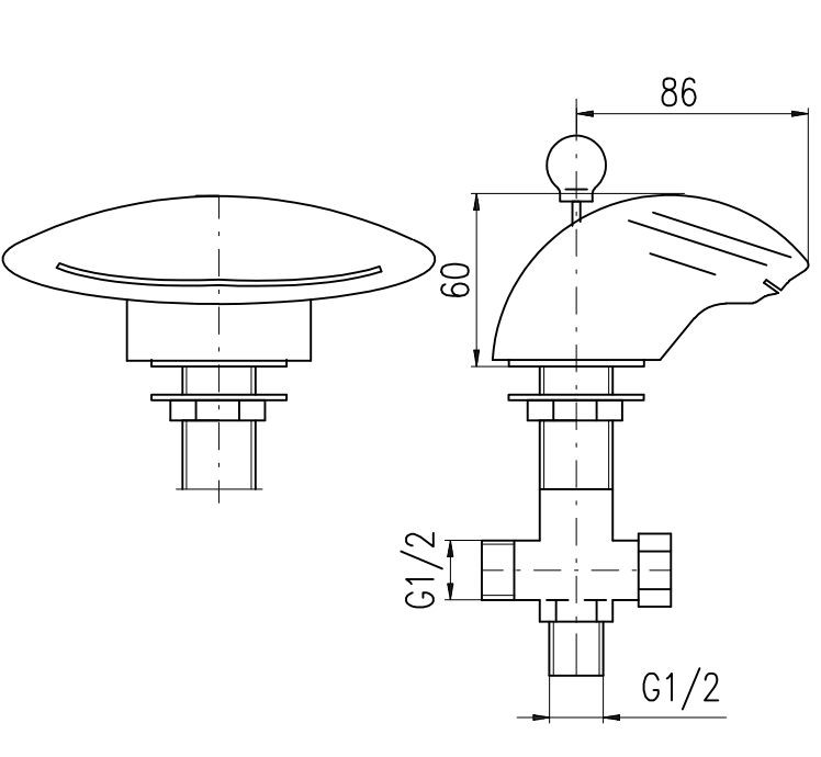 Излив для ванны Rav Slezak VOD7000 для каскадного смесителя, с переключателем.